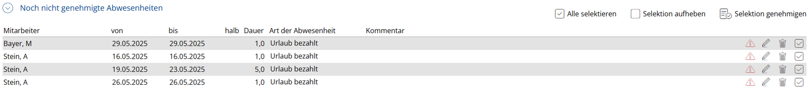 Benutzer können Ihre Urlaubstage über den Urlaubsplaner