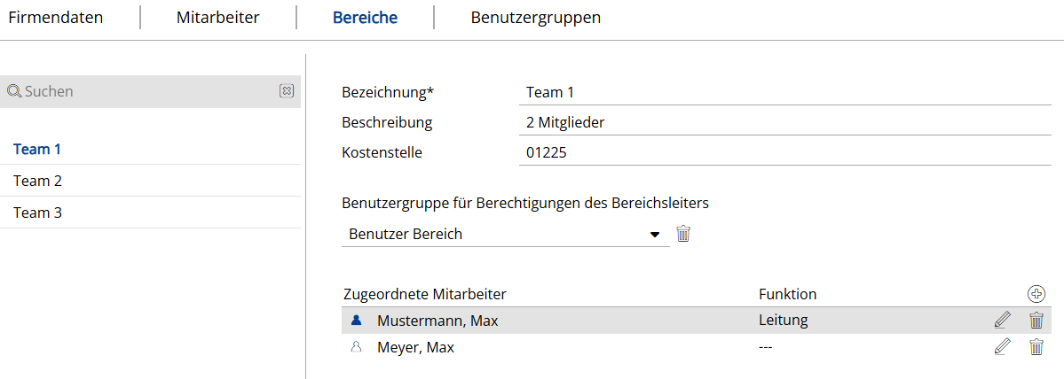 Mitarbeiter sehen zu können. BereicheNeben den Reitern „Firmendaten“ und „Mitarbeiter“ haben Sie nun auch die Möglichkeit, Mitarbeitende in Bereiche zu unterteilen und bereichsspezifische Berechtigungen individuell festzulegen.